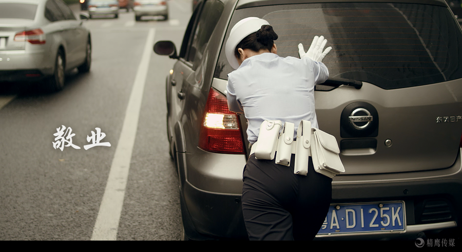 敬业篇中是一位女警察在艰难地帮市民推车,敬业的工作态度,反映了为人民服务的公仆精神。
