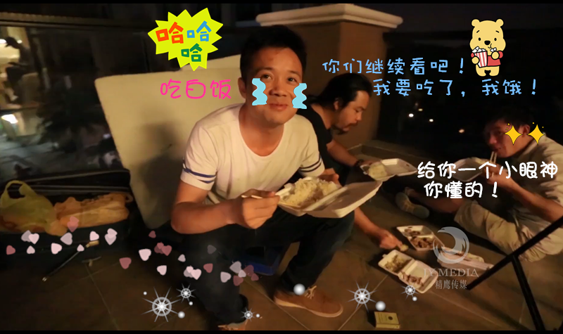 今天,在我们的《精鹰片场》,大家将看到精鹰传媒影视团队在拍摄现场最为真实的工作状态,传说中的吃盒饭与睡地板“隆重”登场,他们的付出又何尝不是一种感动?