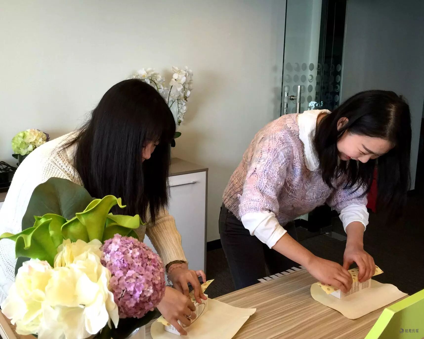 3·8“女生节”送礼物喽! 今天早上刚上班,精鹰传媒管理中心人力资源部的同事就在准备精美的神秘礼物,给公司的女生们送上一份节日惊喜。